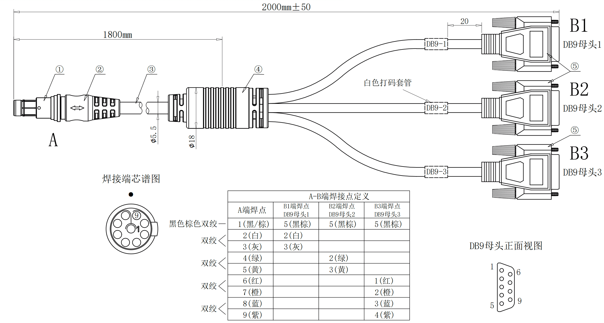 | Pin | Colour | Function | Primary DB9-1 | Auxiliary DB9-2 | ETH DB9-3 | CAN DB9-4 | GPIO DB9-3 | PowerDC |